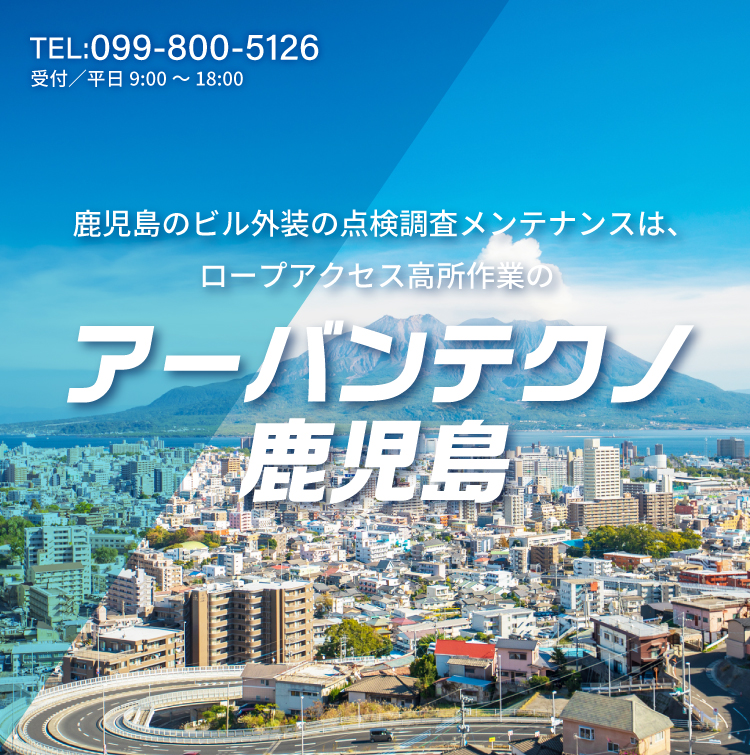 アーバンテクノ鹿児島では、外壁の安全・劣化診断から補修工事まで、独自の安全マニュアルに準拠した質の高いロープアクセス作業でお答えします。