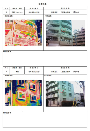 赤外線サーモグラフィ調査と直接打診調査、それぞれのデータを上手に活用することで外壁劣化調査の精度はより向上し説得力のある外壁調査報告書へと繋がります。